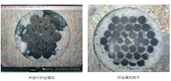 除了能使纖絲之間形成均勻間隙,避免因距離過近導(dǎo)致的串擾之外,膠水的作用還體現(xiàn)在: