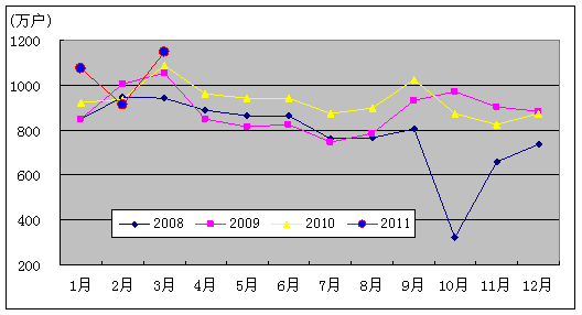 圖3. 2008-2011年互聯(lián)網(wǎng)用戶各月凈增比較