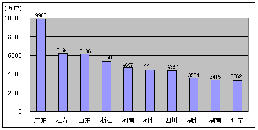 圖9. 2011年3月移動電話用戶排名前十名的省份