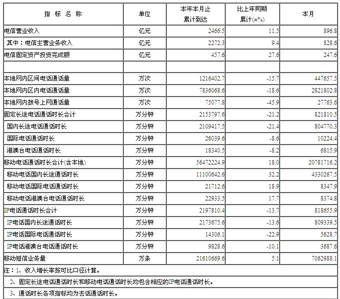 2011年1-3月,全國電信業(yè)務總量累計完成2654.4億元,比上年同期增長14.7%;電信主營業(yè)務收入累計完成2272.3億元,比上年同期增長9.4%。