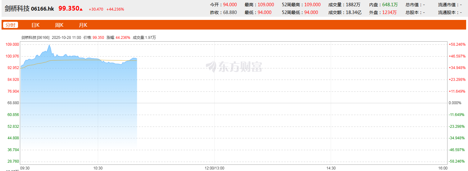 ICC訊 劍橋科技(6166.HK)首掛上市,公告顯示,每股定價(jià)68.88港元,共發(fā)行6701.05萬(wàn)股股份,每手50股,所得款項(xiàng)凈額約44.8億港元。截至發(fā)稿,漲44.24%,報(bào)99.35港元,成交額18.34億港元。