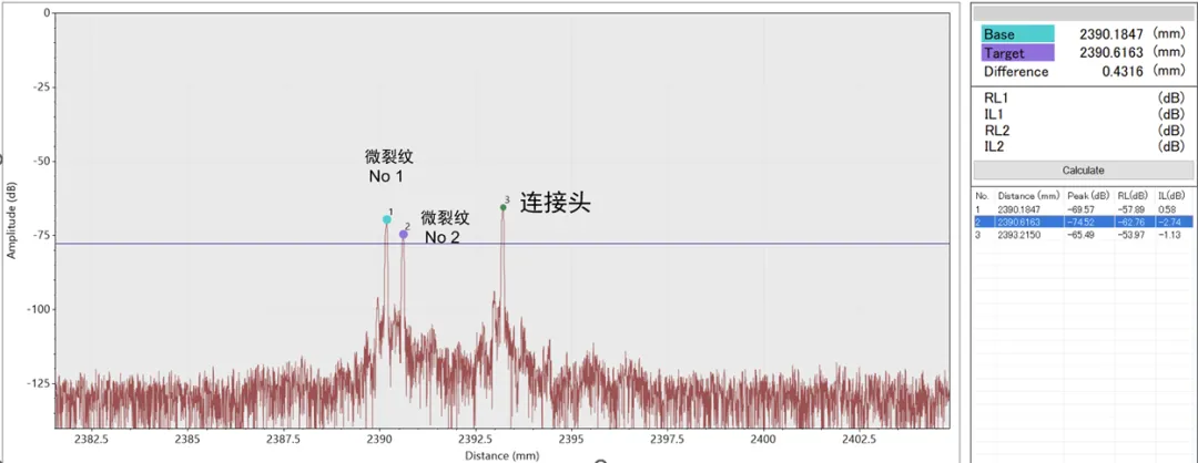 某數(shù)據(jù)中心光模塊出現(xiàn)性能異常,傳統(tǒng)方法無法定位問題。使用SPA-110檢測后,在距離端口5.4227mm處發(fā)現(xiàn)微米故障,精準定位故障點。