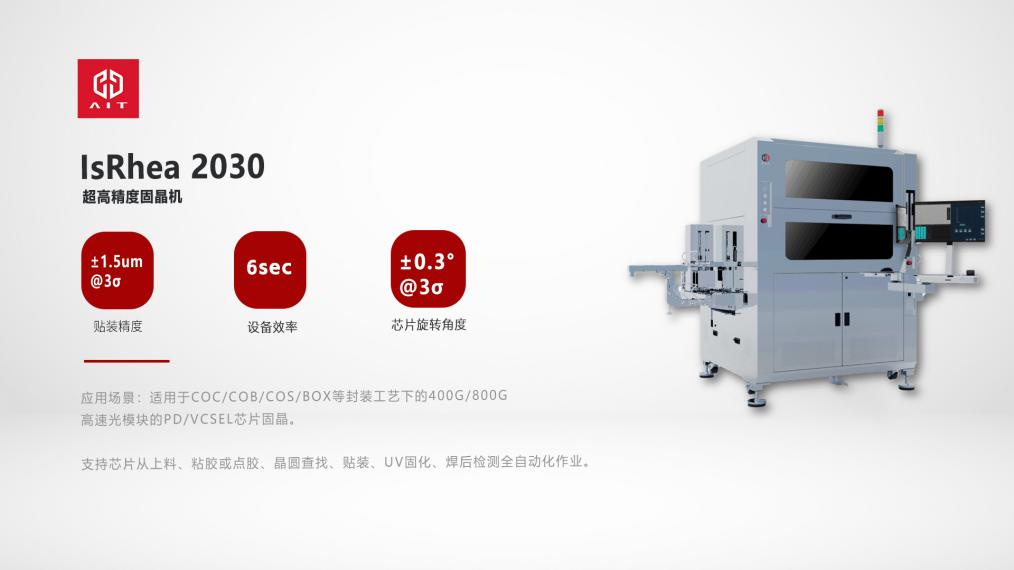 歷經(jīng)一年的開發(fā)測試,中科精工正式推出全新迭代的超高精度固晶機isRhea2300,該設(shè)備可實現(xiàn)±1um@3σ(標準片);±3um@3σ(貼片精度); 效率6sec,目前已成功在三家頭部級光模塊客戶工廠的DEMO驗證,并達成戰(zhàn)略合作和進入批量生產(chǎn)交付環(huán)節(jié)。