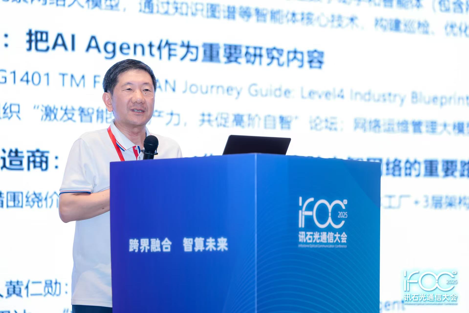 在中國(guó)信科集團(tuán)科技委委員、烽火通信高級(jí)技術(shù)專家吳軍題為《AI Agent技術(shù)賦能高階自智光網(wǎng)絡(luò)》的演講中,他首先介紹了全球電信運(yùn)營(yíng)商將AI及Agent技術(shù)應(yīng)用于網(wǎng)絡(luò)運(yùn)維管理的行業(yè)趨勢(shì),并深入闡釋了網(wǎng)絡(luò)Agent的概念、架構(gòu)、核心功能,以及其在網(wǎng)絡(luò)運(yùn)維管理中的具體賦能作用。當(dāng)前,加速推進(jìn)通信網(wǎng)絡(luò)數(shù)智化轉(zhuǎn)型升級(jí),構(gòu)建自動(dòng)化、智能化的網(wǎng)絡(luò)運(yùn)營(yíng)能力,推動(dòng)產(chǎn)業(yè)鏈各方從通信服務(wù)向信息服務(wù)轉(zhuǎn)型,已成為行業(yè)的共同選擇。吳軍在演講中分享烽火自智光網(wǎng)絡(luò)所采用的“數(shù)字孿生+3級(jí)智能”架構(gòu)下的創(chuàng)新應(yīng)用案例,并對(duì)如何通過(guò)AI及Agent技術(shù)實(shí)現(xiàn)高階自智光網(wǎng)絡(luò)的前景與實(shí)踐路徑進(jìn)行了展望。
