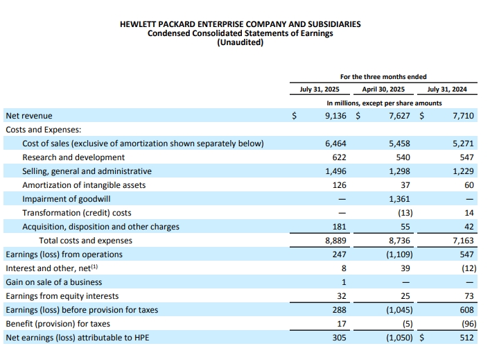 ICC訊 HPE公布截至2025年7月31日的2025財(cái)年第三季度財(cái)務(wù)業(yè)績(jī)。