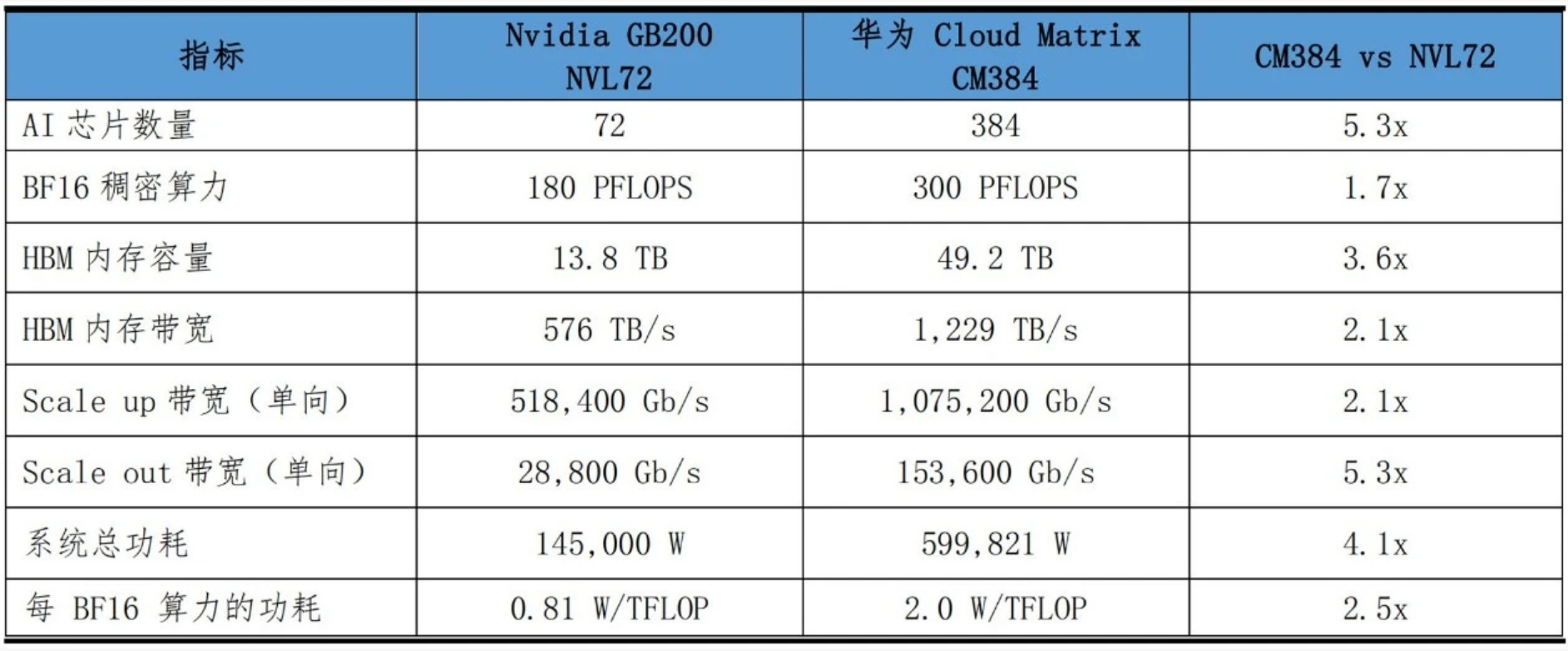 在超節(jié)點方面,華為推出了CloudMatrix 384超節(jié)點產(chǎn)品,依靠華為強(qiáng)大的光互聯(lián)能力,將384塊昇騰910C芯片組合在一起,并通過6912個400G LPO光模塊和3168根光纖構(gòu)建高速互聯(lián)總線,實現(xiàn)了269TB/s的總帶寬。