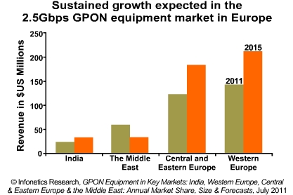 “在法國電信和德國電信推出GOPN FTTH的帶領(lǐng)下西歐地區(qū)2.5 GPON 設(shè)備的銷售量將會上升;并且中東歐地區(qū)2.5 GPON的銷售量也會上升,因為其主要運營商也在像GPON FTTH技術(shù)轉(zhuǎn)變。”分析師Feff Heynen指出。