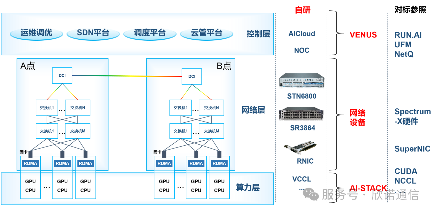 此次獲獎的“自主可控智算通信系統(tǒng)”創(chuàng)新成果,是由欣諾通信與基流科技聯(lián)合打造,實現(xiàn)了從芯片到通信協(xié)議100%自主可控,成功推出國產(chǎn)25.6T AI交換機(jī)及適配國產(chǎn)GPU的VCCL通信庫,并自主研發(fā)異構(gòu)統(tǒng)一通信庫FlagCX,填補(bǔ)了開源生態(tài)空白。該系統(tǒng)支持城域算力一體化組網(wǎng),實現(xiàn)50公里長距離訓(xùn)練效率99%以上。