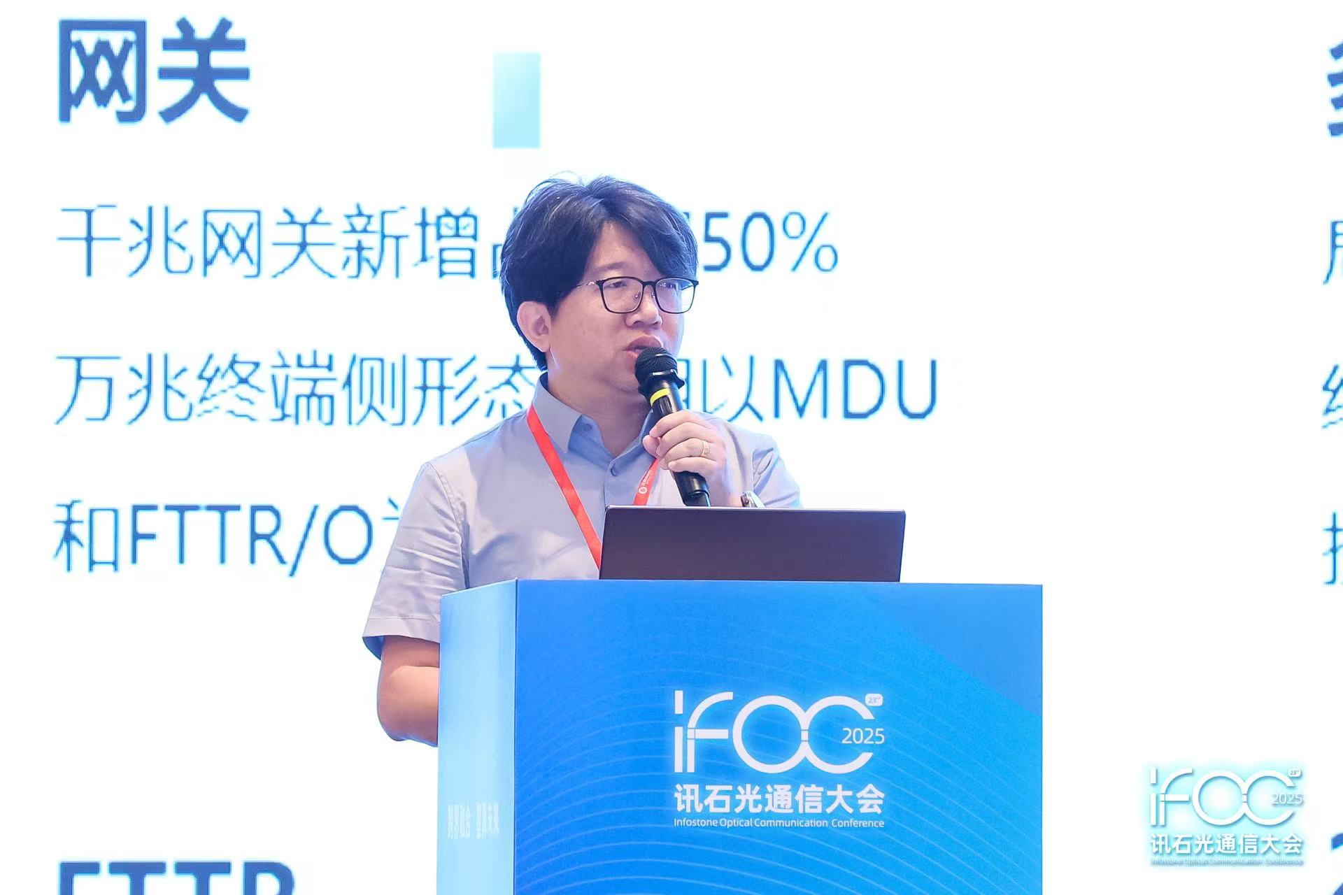中國(guó)移動(dòng)通信研究院接入與家庭網(wǎng)絡(luò)研究室主任李俊瑋,則圍繞《萬(wàn)兆光網(wǎng)技術(shù)發(fā)展趨勢(shì)》分享觀點(diǎn)。他介紹了中國(guó)移動(dòng)在萬(wàn)兆光網(wǎng)領(lǐng)域的趨勢(shì)研判、關(guān)鍵技術(shù)及產(chǎn)業(yè)推進(jìn)最新進(jìn)展,指出當(dāng)前行業(yè)已進(jìn)入千兆加速普及、萬(wàn)兆試點(diǎn)推進(jìn)的新階段,而ION-2030、算力網(wǎng)絡(luò)與AI技術(shù)的發(fā)展,正為萬(wàn)兆光網(wǎng)技術(shù)演進(jìn)注入新動(dòng)能。為應(yīng)對(duì)這一趨勢(shì),中國(guó)移動(dòng)正聯(lián)合產(chǎn)業(yè)界開(kāi)展攻關(guān)創(chuàng)新,重點(diǎn)突破50G PON+FTTR協(xié)同的萬(wàn)兆光接入網(wǎng)新型架構(gòu)與關(guān)鍵技術(shù),同時(shí)推動(dòng)產(chǎn)業(yè)成熟與創(chuàng)新應(yīng)用拓展。