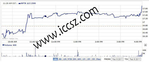 新飛通(NeoPhotonics)公司(紐約證券交易所:NPTN)2月2日宣布其首次公開發(fā)行750萬普通股,每股定價(jià)11美元。NeoPhotonics公司已授予承銷商有權(quán)選擇購買除公開發(fā)售外的112.5萬超額配股權(quán)。普通股已于2011年2月2日以“NPTN”股票代碼在紐約證券交易所上市交易。新飛通2月9日收盤價(jià)為17.93美元,較前日漲幅6.98%。