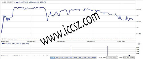 前鼎(4908)自結(jié)1月營收較上月成長45%達(dá)1.28億元,并較去年同月成長10.8%,回到了去年10~11月份的水平;該公司表示,2月份因?yàn)楣ぷ魈鞌?shù)的關(guān)系,2月營收將回軟。法人以2月份營收0.9億元,且3月營收回到1月水平,今年第一季營收有機(jī)會較上季持平。不過,前鼎2010年第四季營收表現(xiàn)并不出色,去年第四季營收較上一季減25%。網(wǎng)通設(shè)備大廠友訊(2332)在兔年農(nóng)歷過年后發(fā)布訊息表示,跟代工廠明泰(3380)同接獲了中華電信(2412)的2億多元標(biāo)案,供應(yīng)FTTx的近1.2萬門AGG-E接取層網(wǎng)絡(luò)設(shè)備,據(jù)了解,其光纖模塊即由前鼎供應(yīng),受惠此消息,加上近期業(yè)內(nèi)也看好美國光纖類股股價(jià)強(qiáng)勢,帶動前鼎今日盤中股價(jià)數(shù)度漲停。美國時(shí)間2月9日(上圖為北京時(shí)間2月10日),前鼎收盤價(jià)38.80美元,較前日漲幅4.58%。