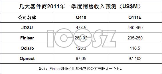 【訊石光通訊咨詢網(wǎng)】從2009年第二季度開始,全球光器件行業(yè)已經(jīng)實(shí)現(xiàn)連續(xù)7個(gè)季度的環(huán)比增長。從Finisar對(duì)截至2011年四月底財(cái)季的預(yù)測(cè)來看,光器件商未來兩三個(gè)季度也許會(huì)比較艱難。