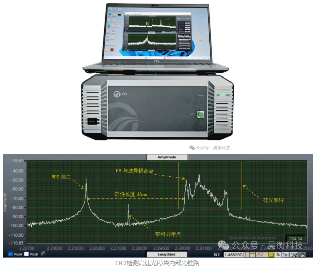 OCI是一款超高精度光學(xué)鏈路診斷儀,原理基于光頻域反射(OFDR)技術(shù),單次測(cè)量可實(shí)現(xiàn)從器件到鏈路的全范圍診斷。OCI可輕松查找并判別光纖鏈路中的宏彎、連接點(diǎn)和斷點(diǎn),并精確測(cè)量回?fù)p、插損、光譜、時(shí)延等參數(shù),其事件點(diǎn)定位精度高達(dá)0.1mm。OCI不僅可用于光學(xué)鏈路診斷,還可拓展分布式光纖傳感功能,實(shí)現(xiàn)應(yīng)變和溫度的高分辨測(cè)量。
