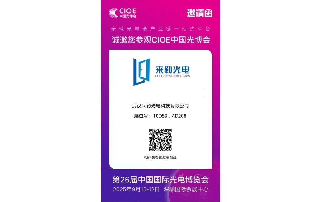 ICC訊 9月10~12日,中國國際光電博覽會(CIOE 2025)將在深圳國際會展中心舉辦,來勒光電誠邀您蒞臨10D59展臺、4D208展臺,參觀交流、洽談合作!
