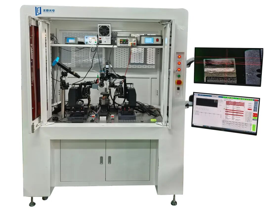 Y波導(dǎo)自動耦合設(shè)備是一款專為集成光學(xué)Y波導(dǎo)組件設(shè)計的高精度自動化系統(tǒng),通過三組六軸精密電動位移臺,與實時光功率及消光比值的反饋,實現(xiàn)保偏FA與Y波導(dǎo)芯片的快速自動對準(zhǔn)與耦合,并能夠進(jìn)行自動點膠及UV固化。該設(shè)備支持偏振態(tài)優(yōu)化、多通道同步校準(zhǔn),可適配多種Y波導(dǎo)結(jié)構(gòu)(如鈮酸鋰或硅基波導(dǎo))。本設(shè)備可大幅提升生產(chǎn)效率及生產(chǎn)一致性,適用于硅光、薄膜鈮酸鋰等多種材料。