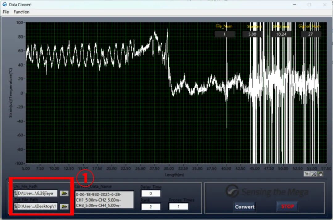 ①紅框處上方為存放數(shù)據(jù)的待處理文件夾,下方為處理后數(shù)據(jù)的保存路徑,均設(shè)置后點(diǎn)擊convert即可等待數(shù)據(jù)轉(zhuǎn)換完成,轉(zhuǎn)換后數(shù)據(jù)打開如下圖所示。
