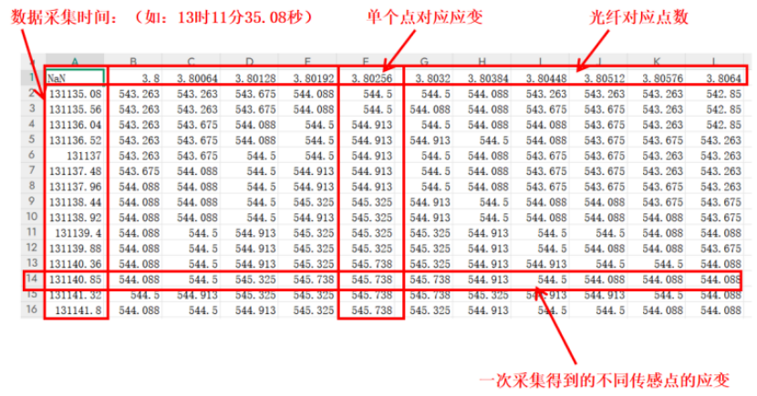 靜態(tài)軟件可保存測試數(shù)據(jù)和原始數(shù)據(jù),測試數(shù)據(jù)為TXT格式,可直接用EXCEL打開,打開后如下圖。