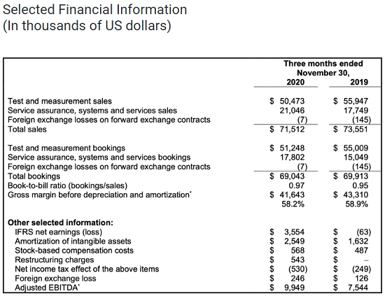 ICC訊(編譯:Nina)加拿大魁北克市,2021年1月12日--EXFO公司(納斯達(dá)克:EXFO;多倫多證交所:EXF),通信行業(yè)的測(cè)試、監(jiān)測(cè)和分析專家,今天公布了其截至2020年11月30日的2021財(cái)年第一季度財(cái)務(wù)業(yè)績(jī)。