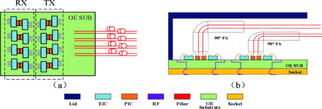 近期,來(lái)自中科院的一項(xiàng)針對(duì)100 Gbps垂直腔面發(fā)射激光器(VCSEL)陣列的高密度光耦合封裝研究取得了重要突破。該研究提出了一種90°彎曲二維光纖陣列(2D-FA),通過(guò)創(chuàng)新設(shè)計(jì)和高精度工藝,成功實(shí)現(xiàn)了高效光耦合,為CPO應(yīng)用提供了可行的解決方案。