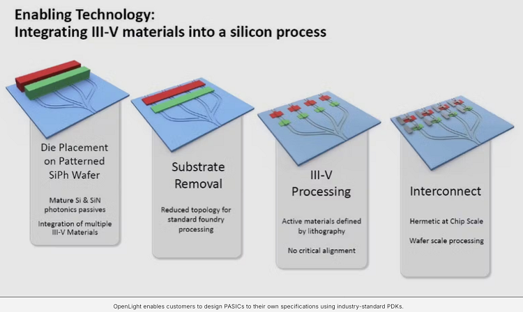 基于磷化銦與硅光子的異構(gòu)集成技術(shù),OpenLight的制程設(shè)計套件(PDK)為客戶提供了涵蓋集成激光器、調(diào)制器、放大器和探測器在內(nèi)的無源及有源元件庫。該P(yáng)DK已在主要光子代工廠之一的Tower Semiconductor得到驗證,確保設(shè)計從第一天起即可投入生產(chǎn),從而幫助客戶利用成熟模塊創(chuàng)建定制光子專用集成電路(PASIC),簡化先進(jìn)芯片開發(fā)流程并加快產(chǎn)品上市時間。