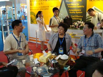 與廈門三優(yōu)光電總經(jīng)理李凌交談中