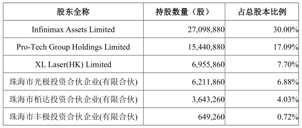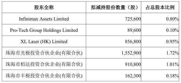 注:若減持期間公司發(fā)布業(yè)績預(yù)告、業(yè)績快報(bào)、定期報(bào)告等重大事項(xiàng),公司股東 Infinimax 、Pro-Tech 、XL Laser、光極、栢達(dá)、豐極將嚴(yán)格遵守“窗口期”買賣股票的相關(guān)規(guī)定。