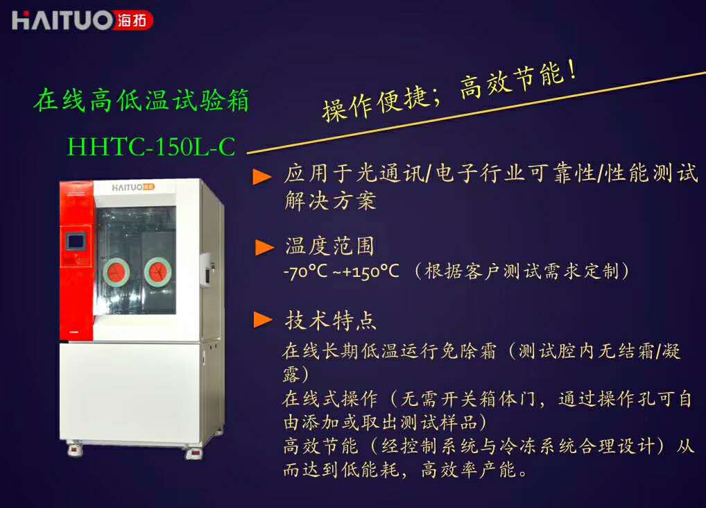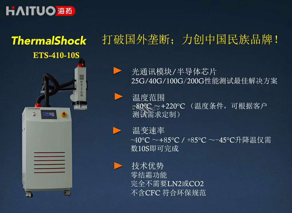 據(jù)介紹,海拓展出的在線式高低溫試驗箱和小型TCT快速溫循箱可應(yīng)用于光通訊、半導(dǎo)體、電子行業(yè)可靠性/性能測試方案。同時,海拓儀器還將展出一款打破國外壟斷的熱沖擊試驗新設(shè)備,該設(shè)備針對光模塊/半導(dǎo)體芯片測試,可用于25G/100G/200G/400G性能測試最佳解決方案。