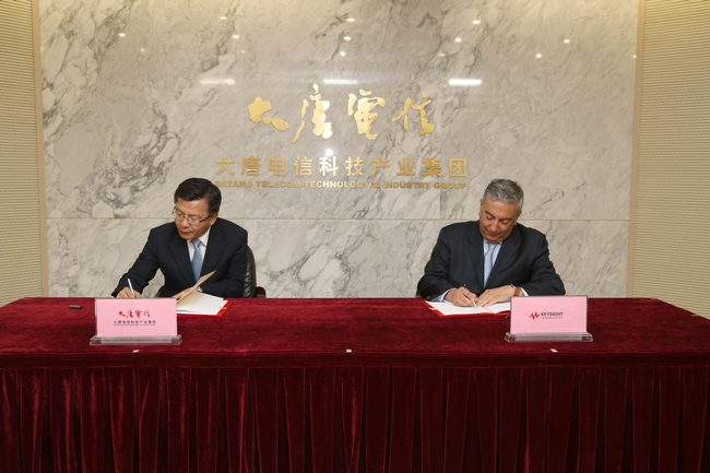 ICCSZ訊 大唐電信集團與是德科技公司(NYSE:KEYS)日前在北京聯(lián)合簽署合作備忘錄,雙方將圍繞5G移動通信技術(shù)研究與開發(fā)展開密切協(xié)作。5G技術(shù)是面向未來大數(shù)據(jù)、眾連接、多場景應(yīng)用的新一代移動通信技術(shù),雙方將致力于研究相關(guān)的新技術(shù)和標(biāo)準(zhǔn),原型驗證和測試技術(shù),共同推動5G的發(fā)展。