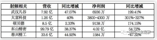 基于5G時(shí)代基站射頻器件需求的高增長(zhǎng),相關(guān)廠商今年半年報(bào)業(yè)績(jī)也表現(xiàn)相當(dāng)亮眼。