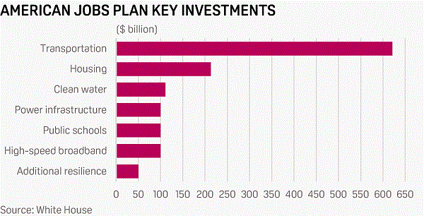 拜登定于周三晚些時(shí)候在匹茲堡公布其2萬(wàn)億美元的 "美國(guó)就業(yè)計(jì)劃(American Jobs Plan)"。這份期待已久的基礎(chǔ)設(shè)施和就業(yè)計(jì)劃包含了對(duì)寬帶擴(kuò)張、半導(dǎo)體制造以及公共交通和幫助消費(fèi)者購(gòu)買電動(dòng)汽車等其他一系列利益的資助。