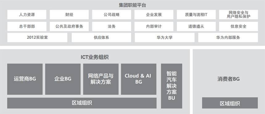 整體來看,除了職能部門,華為業(yè)務(wù)主要分為ICT業(yè)務(wù)和消費(fèi)者業(yè)務(wù),其中,ICT業(yè)務(wù)涵蓋了運(yùn)營(yíng)商BG、企業(yè)BG和Cloud & AI BG,分別對(duì)應(yīng)運(yùn)營(yíng)商客戶、政企客戶和云與計(jì)算產(chǎn)業(yè),這幾大業(yè)務(wù)也支撐起了華為的龐大營(yíng)收。