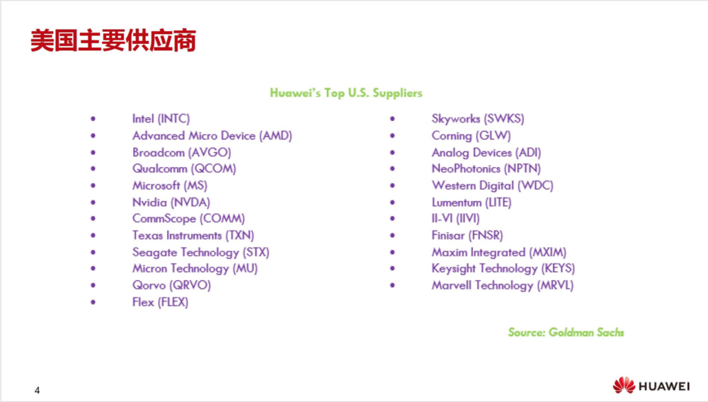 另外,華為官網(wǎng)還曾披露了美國(guó)的主要供應(yīng)鏈廠商。