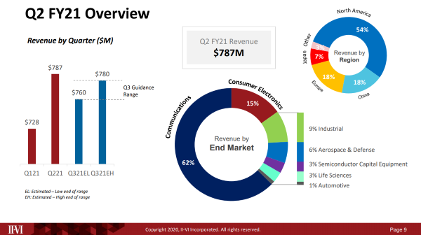 ICC訊(編譯:Nina)美國賓州匹茲堡2021年2月9日,II-VI高意(納斯達(dá)克:IIVI)今天公布了其截至2020年12月31日的2021財(cái)年第二季度財(cái)務(wù)業(yè)績。