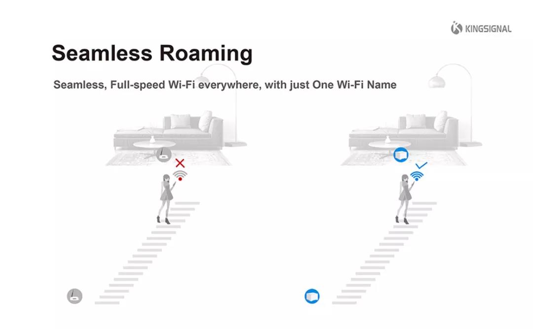 MT1采用了內(nèi)置高增PA芯片及高增益天線(xiàn)的設(shè)計(jì),覆蓋范圍較同類(lèi)產(chǎn)品有明顯優(yōu)勢(shì);在Mesh網(wǎng)絡(luò)中,金信諾研發(fā)團(tuán)隊(duì)在軟件算法上做了多次迭代優(yōu)化,發(fā)射端和接入端的各設(shè)備都統(tǒng)一管理,憑借統(tǒng)一的網(wǎng)絡(luò)名稱(chēng)(SSID)和密碼便利性,支持802.11k/v/r漫游協(xié)議,實(shí)現(xiàn)輕松無(wú)縫漫游。