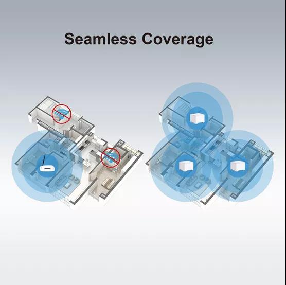 在傳統(tǒng)路由中,自動(dòng)切換信號(hào)需要等待設(shè)備重新聯(lián)網(wǎng),切換卡頓時(shí)間明顯,并且網(wǎng)速也隨之明顯衰減。Wi-Fi mesh是一種創(chuàng)新型的Wi-Fi覆蓋方案,Mesh即網(wǎng)狀網(wǎng)絡(luò),包括一個(gè)主路由及若干從路由,主路由與從路由、從路由之間都可以相互中繼無(wú)線(xiàn)信號(hào),從而擴(kuò)大Wi-Fi網(wǎng)絡(luò)覆蓋范圍、提升用戶(hù)體驗(yàn),即插即用,部署簡(jiǎn)便,信號(hào)穩(wěn)定。