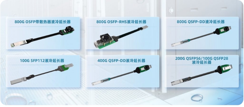 為進(jìn)一步滿足高熱密度數(shù)據(jù)中心的互連需求,易飛揚(yáng)同步推出多款液冷延長器:
