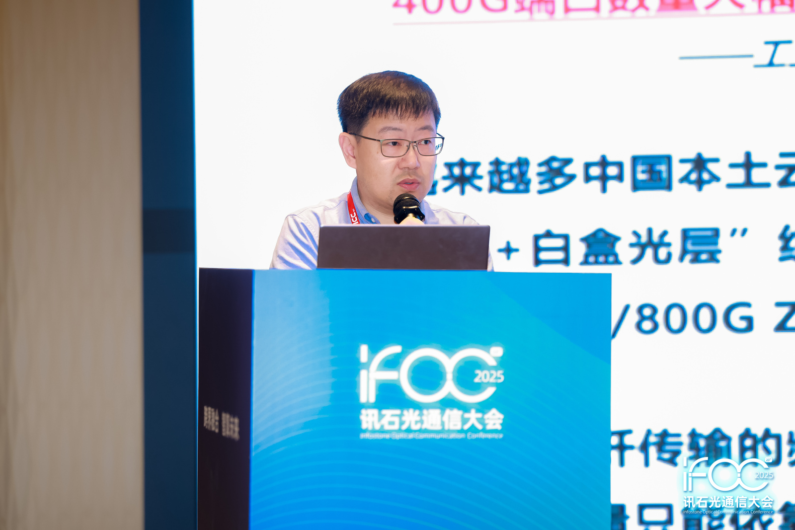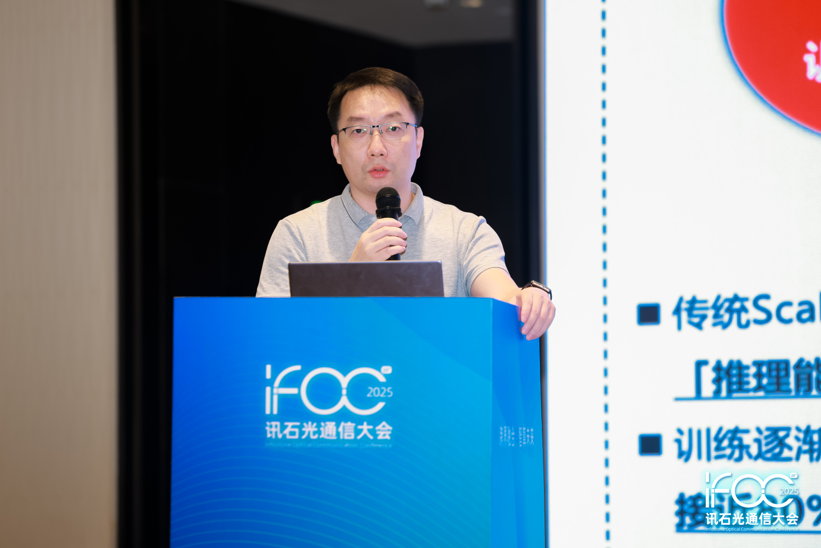 光迅科技相干模塊產(chǎn)品線產(chǎn)品總監(jiān)任余豐以《用光點(diǎn)亮AI集群高速互連》為題,任總首先介紹了光迅科技在AI集群高速光互連領(lǐng)域的技術(shù)與產(chǎn)品布局。他表示,隨著AI訓(xùn)練集群規(guī)模擴(kuò)大,400G及以上速率DWDM組網(wǎng)成為趨勢,相干光模塊向高速率、小型化、低功耗方向發(fā)展。DSP制程持續(xù)突破,封裝形態(tài)從嵌入式向可插拔轉(zhuǎn)變,800G模塊需求增長迅猛。光迅科技已推出多款400G/800G相干模塊產(chǎn)品,并布局1.6T等更高速率技術(shù)。同時(shí),通過光電集成、小型化光放器件等方案,應(yīng)對高速互連在功耗、尺寸、傳輸距離等方面的挑戰(zhàn),支撐Scale-up/Scale-out AI集群組網(wǎng)需求。