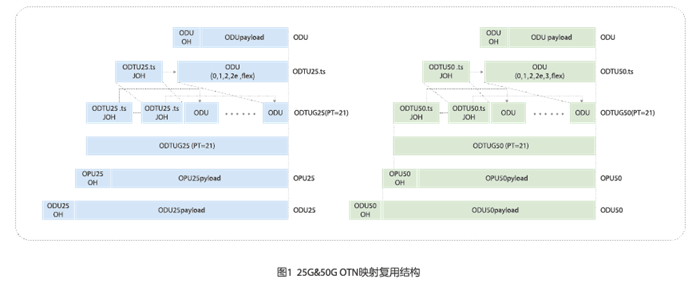 同廠商的不同需求以及促進(jìn)相關(guān)設(shè)備的研發(fā)商用,經(jīng)過國內(nèi)外專家討論,在25G&50G OTN接口速率、幀結(jié)構(gòu)、映射復(fù)用體系以及物理層接口結(jié)構(gòu)四個方面達(dá)成了共識。