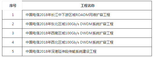 ICCSZ訊(編輯:Aiur) 4月23日消息,中國電信公布2018年長江中下游區(qū)域ROADM網(wǎng)絡及西北、西南、東北區(qū)域和深港延伸段4個100G DWDM系統(tǒng)擴容工程單一來源采購結果,華為、中興通訊和烽火通信入選。