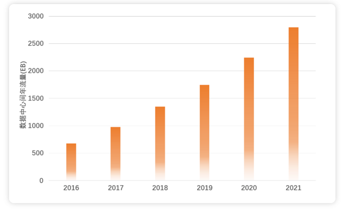 圖 1 Cisco發(fā)布的數(shù)據(jù)中心年流量增長(zhǎng)趨勢(shì)