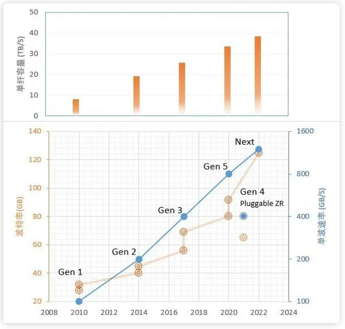 其次,成本問(wèn)題。受益于相干光傳輸技術(shù)的不斷演進(jìn),單波速率從100Gb/s增長(zhǎng)到了800Gb/s,由于電層設(shè)備的主要成本來(lái)自于光學(xué)器件,因此單波速率提高有利于降低單位成本。不過(guò),過(guò)去10年,很少有一家系統(tǒng)廠(chǎng)家持續(xù)保持產(chǎn)品上的領(lǐng)先優(yōu)勢(shì)。這意味著,如果繼續(xù)采用封閉系統(tǒng)構(gòu)建網(wǎng)絡(luò),將無(wú)法第一時(shí)間享受到技術(shù)發(fā)展的紅利。