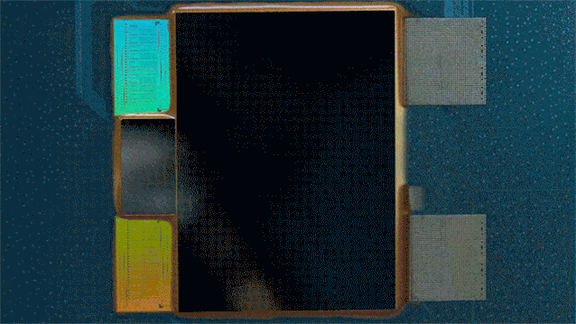 動(dòng)圖,左側(cè)是兩個(gè)光子芯粒,中間是 Stratix10