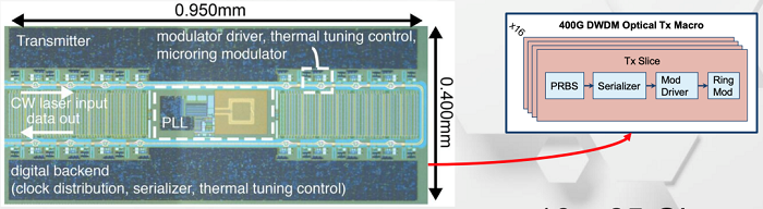 發(fā)送端光學(xué)宏單元的芯片版圖和架構(gòu)圖