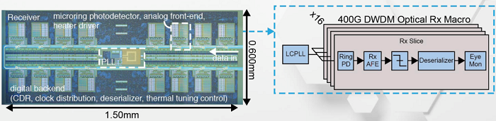 接收端光學(xué)宏單元的芯片版圖和架構(gòu)圖
