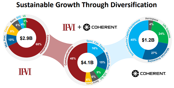 打造全球規(guī)模更大的領(lǐng)導(dǎo)者,以應(yīng)對不可逆的大趨勢:II-VI和Coherent將共同打造一家年收入約41億美元的光子解決方案、化合物半導(dǎo)體以及激光技術(shù)和系統(tǒng)的全球領(lǐng)導(dǎo)者,并以破壞性技術(shù)平臺和規(guī)模運(yùn)營,迎接合并后規(guī)模約達(dá)250億美元的有效市場(available