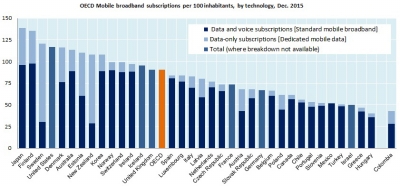 ICCSZ訊 據經合組織(OECD)最新公布的統(tǒng)計數據顯示,截至2015年12月,35個OECD國家的移動寬帶普及率已達到90.3%,這意味著在這些國家中,超過十分之九的人口都是高速無線互聯網用戶。相比之下,在2014年12月,OECD國家的移動寬帶普及率只有81.6%。