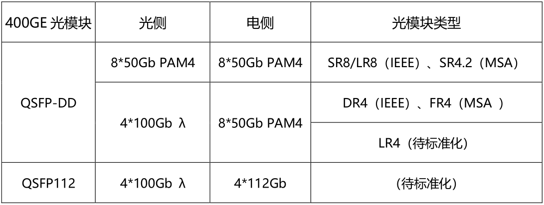 表1:QSFP-DD與QSFP112兩種400GE光模塊技術(shù)的差異對(duì)比