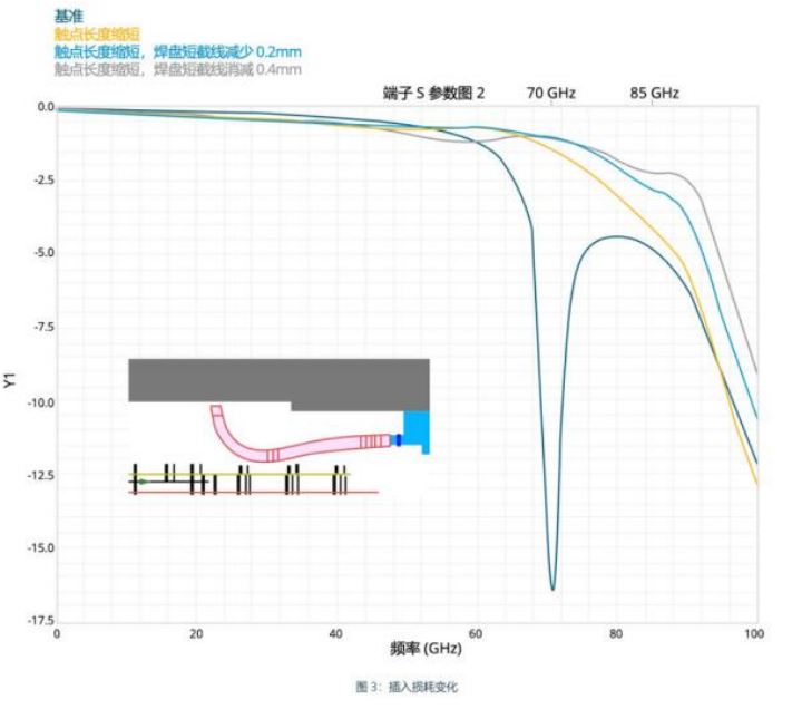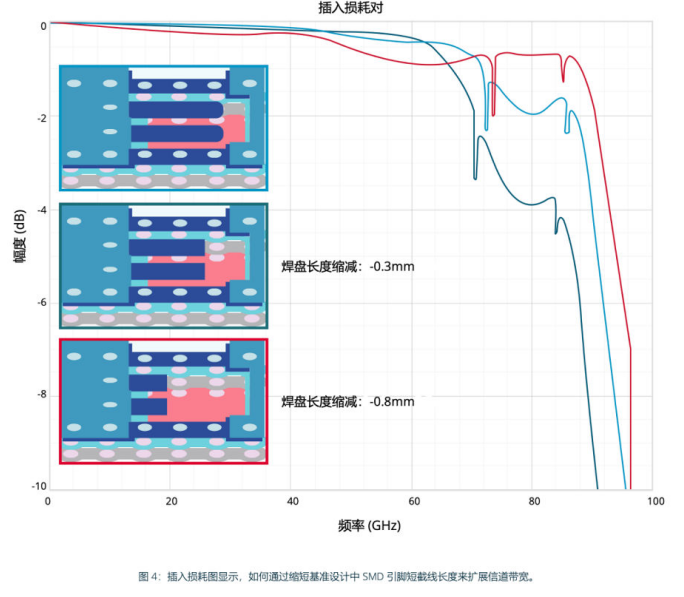縮短連接器插配接觸端長度、SMD 焊盤短截線尺寸,可將帶寬擴展至支持 448Gbps PAM6(需 90 GHz 帶寬)和 448Gbps PAM8(需 75 GHz 帶寬)。