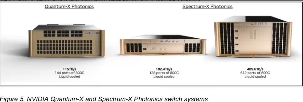公司計(jì)劃 2026 年下半年發(fā)布 Spectrum-X 光子以太網(wǎng)平臺(tái),基于 Spectrum-6 芯片,涵蓋 SN6810(102.4Tb/s,128 端口)和 SN6800(409.6Tb/s,512 端口)兩款型號(hào),同樣支持液冷。