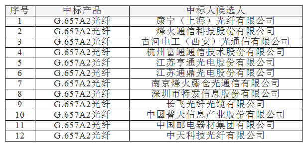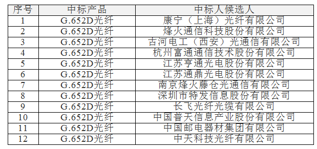 ICCSZ訊,今日早間消息近日中國電信2013年光纖集中采購結果出爐,包括康寧、烽火通信、亨通光電等12家廠商中標,產(chǎn)品包含G.652D光纖和G.757A2兩種型號。
